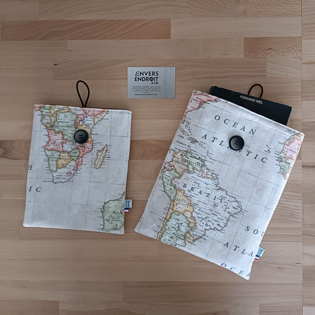 • taille S pour les livres de poche (11 cm x 18 cm) : environ 21 cm x 17 cm